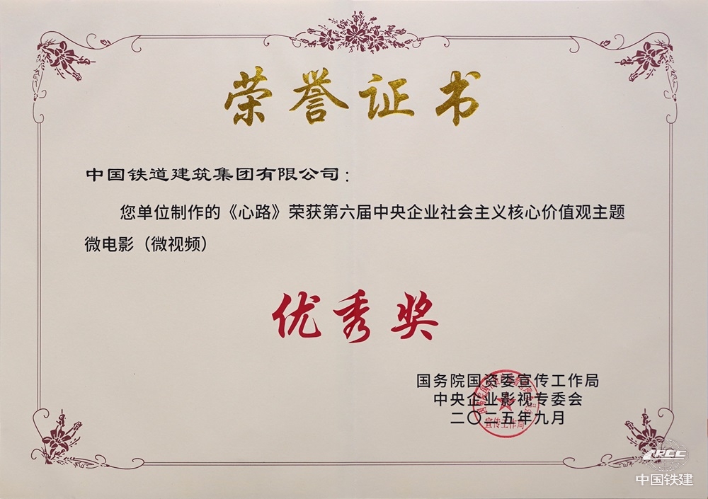 近日日,由國務院國資委宣傳工作局主辦的第六屆中央企業社會主義核心價值觀主題微電影(微視頻)展映發布儀式暨基層理論宣講優秀微視頻征集展映活動在京舉行?;顒蝇F場發布了初心使命、愛黨報國、大國重器、敬業奉獻、社會責任等五個主題優秀作品,以及中央企業基層理論宣講優秀微視頻作品。其中中鐵物資聯合所屬西北公司創作的《心路》獲本次微電影(微視頻)最高獎項——優秀獎,并作為中國鐵建4部優秀獎獲獎作品代表受邀到活動現場頒獎。